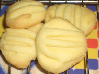 This recipe is from Betty Saw's book and is posted on the net by various bloggers. I'm glad that the texture remained soft and fluffy even after a day! Also, I think the taste is good – full of lemony and creamy goodness. However, the sides and bottoms browned too fast – looks burnt, but doesn't taste burnt (phew!). Think that's because my mini muffin tin was the non-stick, black version. Think I will bake at a reduced temperature of 160 deg C to overcome this. Also, will fill the muffin tins abt ½ to 2/3, so that the cupcakes will not raise over the paper cases and become too brown….